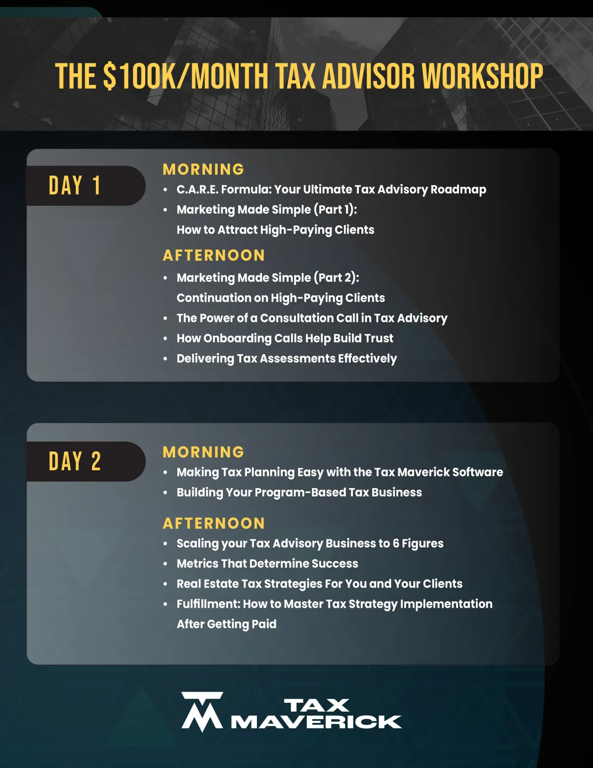 © 2025 The $100k/Month Tax Advisor Workshop | All rights reserved.